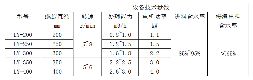 栅渣压实机规格表